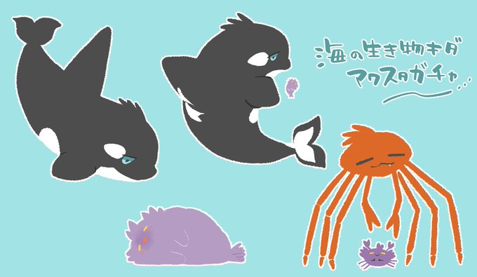 海の生き物アクスタのアンケートです🏖☀️ ガチャに関してもアンケートがあります、御協力どうぞよろしくお願いいたします…! ※実物はシャチバナくんのお腹の模様が少し変わります docs.google.com/forms/d/e/1FAI…