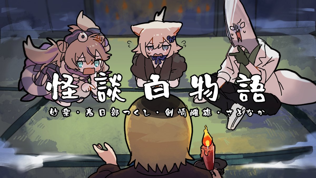 7/16 (日) 22時からは、「怪談白物語」であそびます~!ゆかいなサムネを描きました👻 あそぶひとたち(敬称略) GM:妙楽 PL:春日部つくし、剣崎雌雄、さよなか twitter.com/yopparaiTRPG/s…