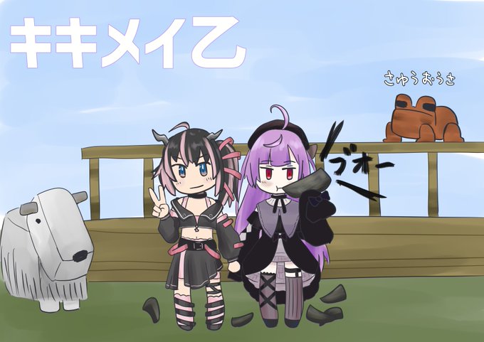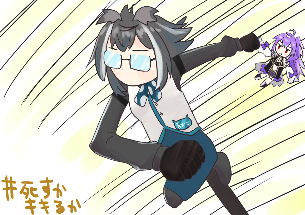 「手つないで一緒にゴールしようねっ!」 「合点承知」 #死すかキキるか #絵ーじぇんと #絵描キキ