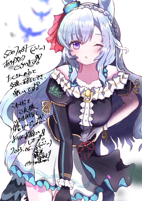 75 230 500フォロワーさん突破記念イラスト✨ 先月描いたアルダンちゃんと 一緒にお祝いです🥰 これからも藤原を、 どうぞよろしくお願いします( ˶'ᵕ'˶) 23/06/19 00:24
