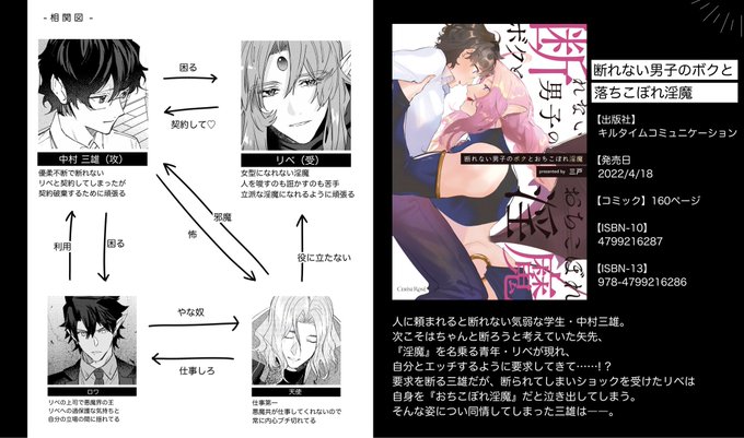 【宣伝】 4月18日発売 拙作『断れない男子のボクとおちこぼれ淫魔』が発売致します〜🎉 優柔不断高校生×弱々淫魔のBLです☺️(すけべ要素はほぼ無いです) 予約(Amazon様):amazon.co.jp/dp/4799216287 書店特典も後日諸々告知できればと思いますので、 どうぞよろしくお願いいたします!