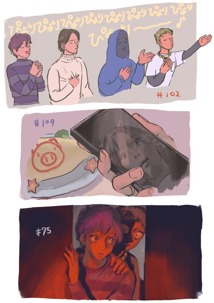 186 1775 描いたはいいけど🎾のマナーわからなくて不安なのと単純に小っ恥ずかしいので消しちゃうかもしれないらんことらんみとゆうしさんとけいごさんの絵です… 20/07/08 19:09
