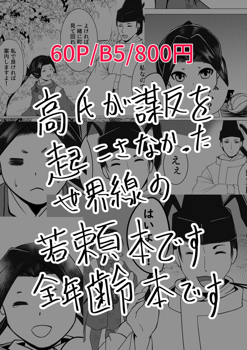 11 13 【2/18 みらぞ】新刊サンプル 60P/B5/800円 『どうか貴方に幸福を』 若頼本 1333年、謀反が起こらなかった世界線で仲を深める若と頼のお話です 全年齢本です、当日よろしくお願いします! 23/02/11 17:47