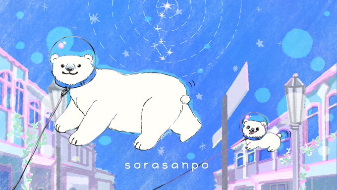 今週もお疲れ様でした💫 のんびり夜空をそらさんぽ🌌🐻❄️💙 大きな白くまちゃんのおさんぽもきゃわいい〜🥰 #こぐま座メンズ #イラスト