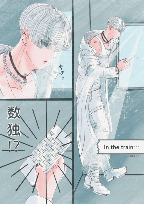 12 56 今週もお疲れ様でした.🐻❄️☆.。.:*・° 電車で見かけたピアスいっぱいメンズが見つめるのは。。。。 1ページマンガです🤍 #マンガが読めるハッシュタグ #こぐま座メンズ #創作男子 23/03/24 19:18