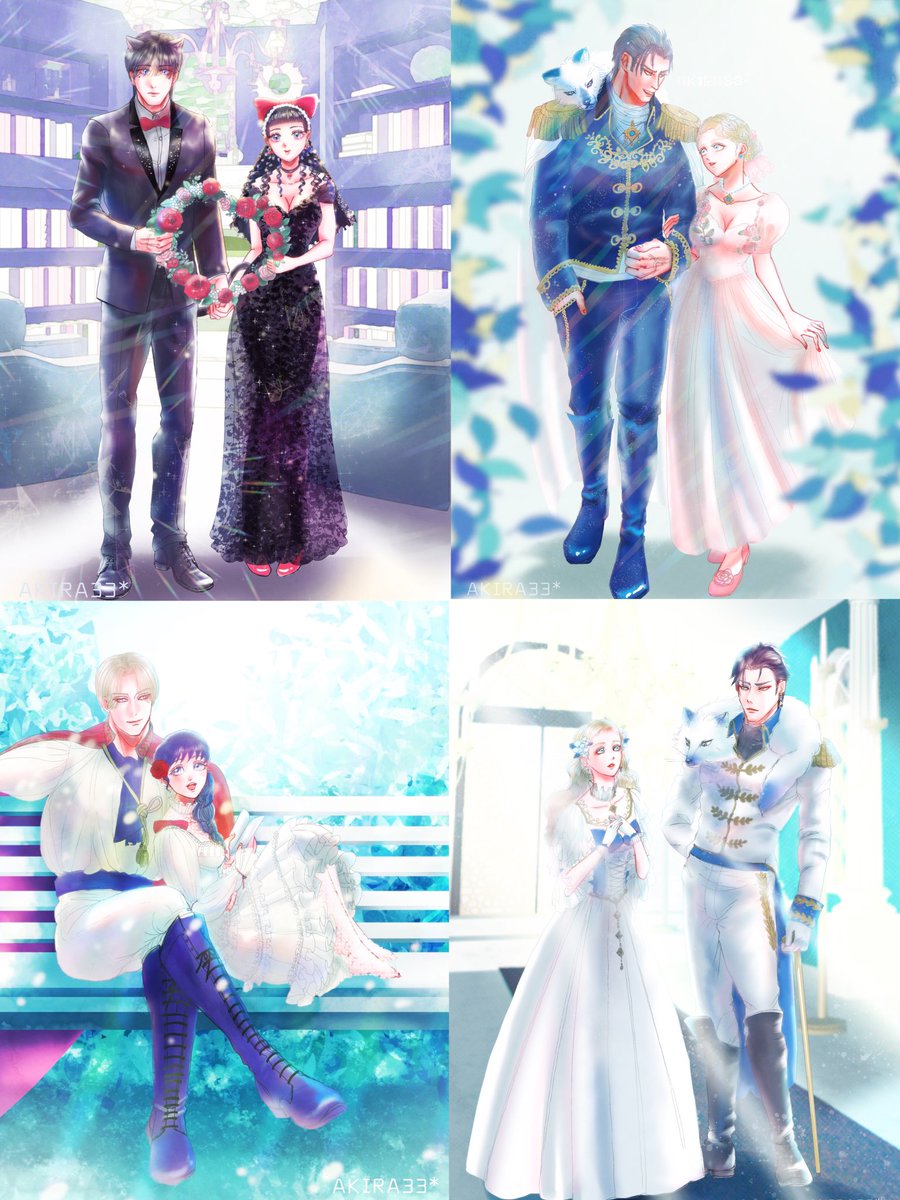 #今月描いた絵を晒そう #イラスト カップル強化月間でした◎ 🐻❄️こぐまちゃんもいるよ💐