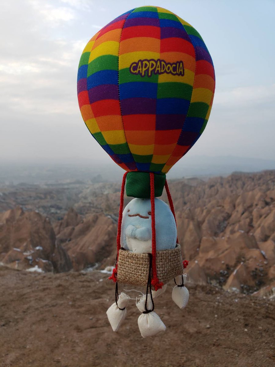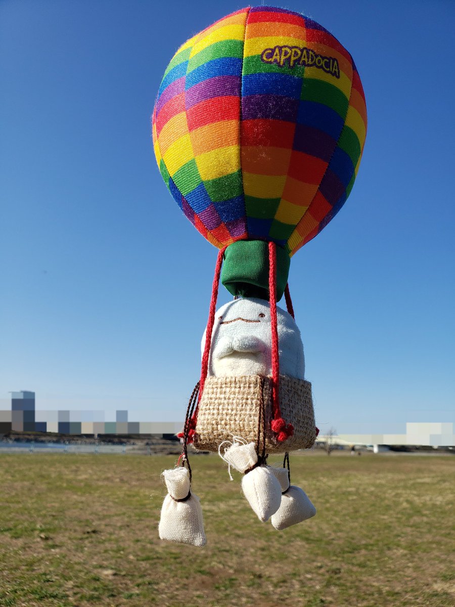 55 201 友達のトルコみやげが、てのりサイズの気球ぬいぐるみ?でした😆 友のガチぬい撮りがすごい…とんでるみたい!! ぬい撮りin海外、憧れるなぁ☺️ ←わたし →友達@トルコ 20/01/04 13:41