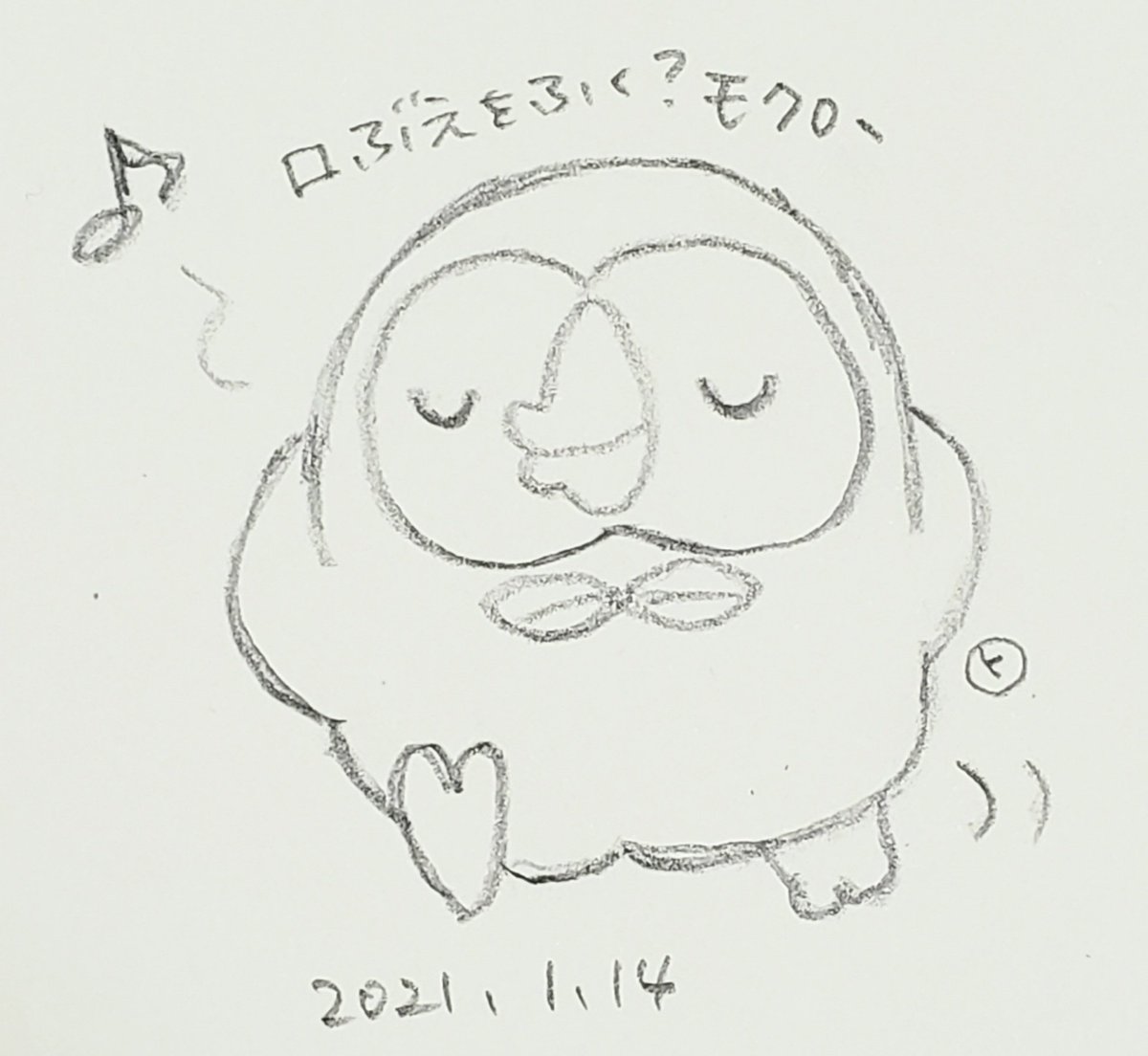 7 29 口笛をふくモクロー♪~(´ε` ) この口、描いてみたかったんだ😁 #毎日モクロー 21/01/14 06:13