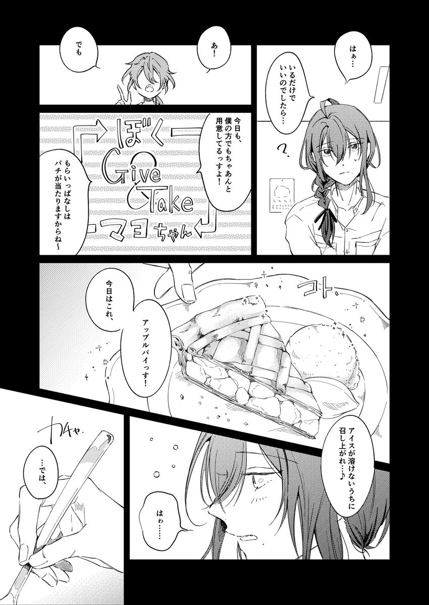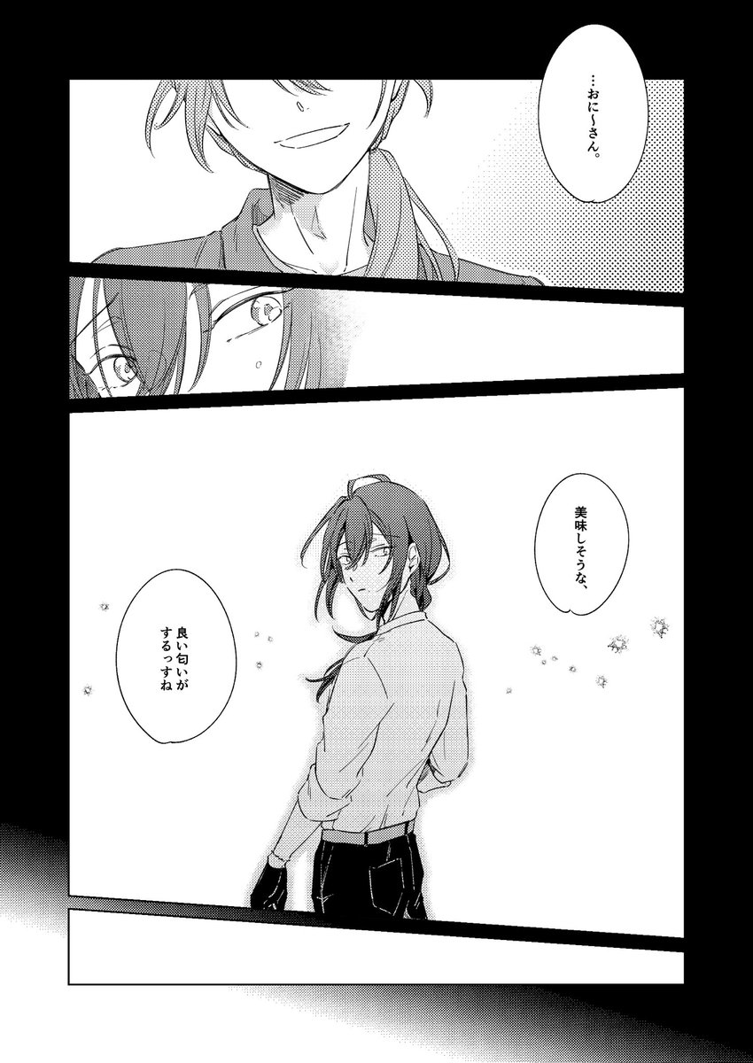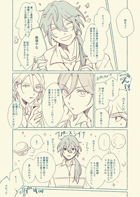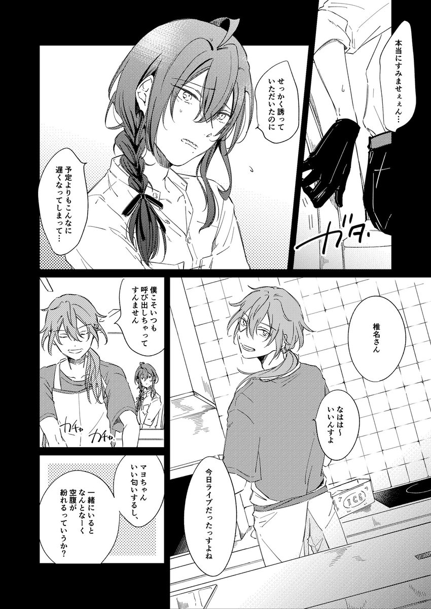 【1/2】何も描けそうにないので、去年マヨイ誕に間に合わなくて7月のwebオンリーでネップリしてたお気に入りのニキマヨの再掲です😅もはや2人会ってないのでニキ+マヨイ……。マヨちゃんおたおめです❣️ #礼瀬マヨイ誕生祭2022