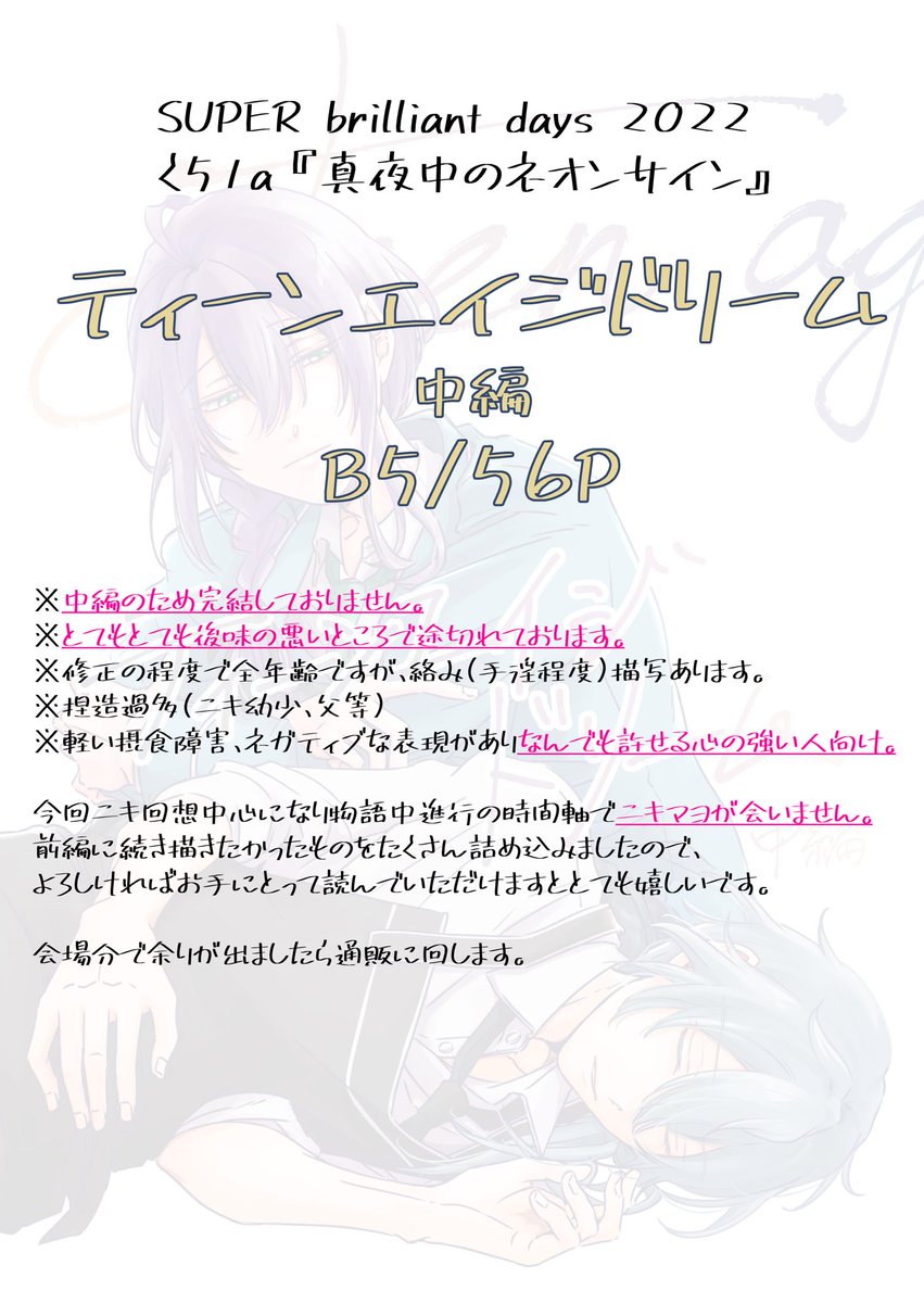 お正月やることもないので完売してるティーンエイジドリーム前編を三が日限定でweb再録します。続き物の最初なのでフォロワーさん限定で…。よければみてみてください。ニキマヨです。 poipiku.com/722210/8084176…