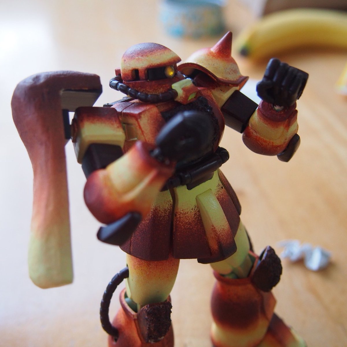 今年完成できたのは、 ①オレンジゼリーザク ②レインボーケーキザク ③ガジェットゴーストケトル(@10zibutton さん) ④ねこぶそう の丁度4つ! #今年作ったプラモ晒そうぜ #今年の4枚
