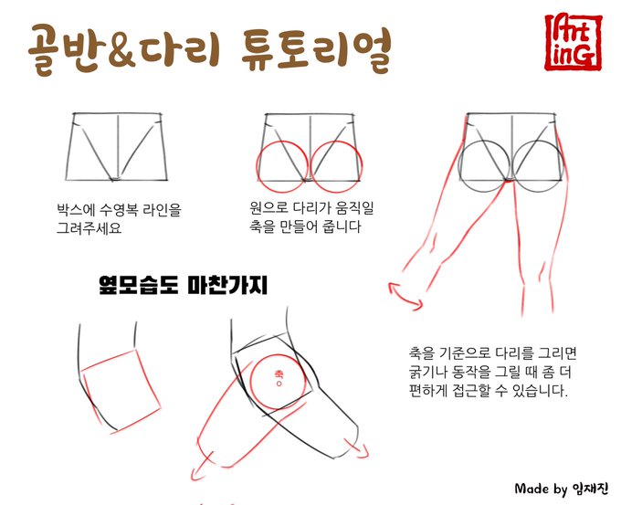골반.다리 그리기 튜토리얼을 만들어 봤습니다. 간략하게 만들다보니 설명이 부족한 부분이 있을수 있는데 이해가 어려운 부분은 질문 남겨주세요.