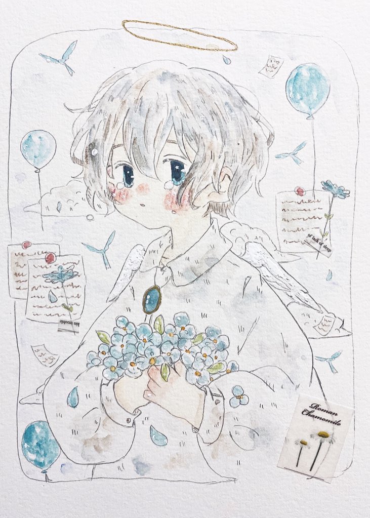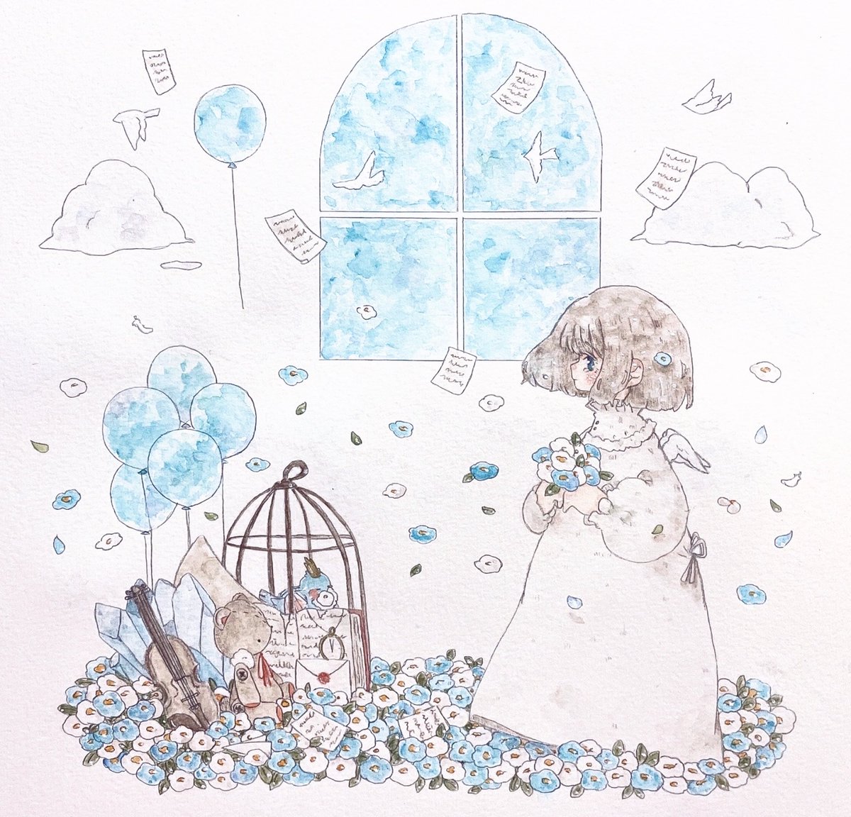#8月になったのでフォロワーさんに自己紹介しようぜ みいです 最近、創作垢に引き篭もってお絵描きしたりしてました アナログ、水彩で優しくて切ないのを描いてます 8月もよろしくお願いします🕊️