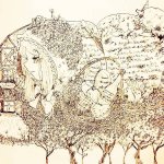 #今までで作画カロリーMAXの作品上げようぜ お花もりもりもりもりペン画 過去絵だけど籠もお花 木もお花もりもりもりした赤ずきんちゃん