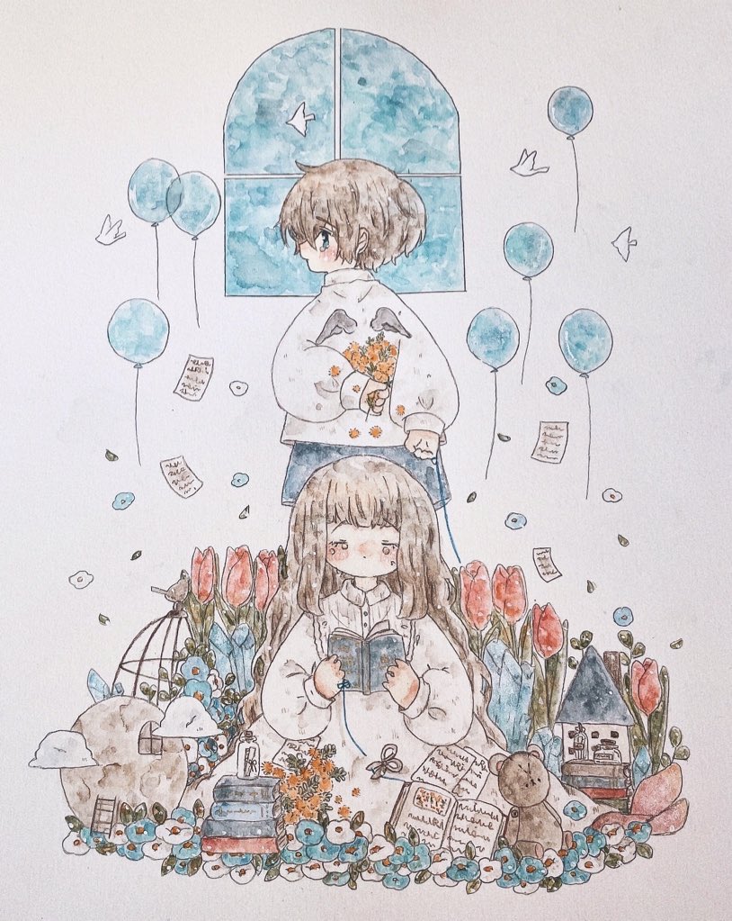 29 160 #フォロワー10000以下の一次創作作家発掘フェス 透明水彩でホワホワなのを描いてます 23/04/10 20:10