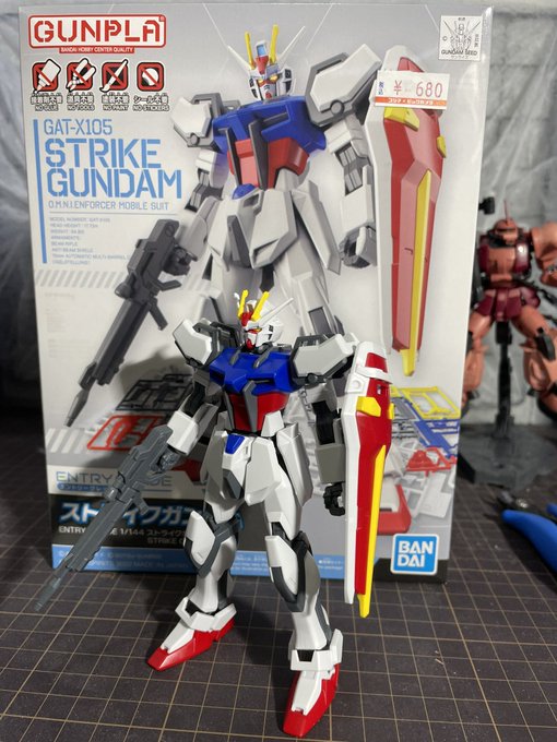 #ガンプラ #ストライクガンダム #EG #ガンプラの画像を貼るとRTされると聞いて #ガンプラ好きな人と繋がりたい 晩御飯までのつなぎに作ってみました。本当にガンプラ初めましてな人にも優しい設計。だけど、良い感じに色分けされてて、合わせ目も目立たない配慮もされててHGよりも出来が良いかも。