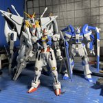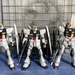 #ガンプラの画像貼るとRTされると聞いて #ガンプラ好きと繋がりたい #クスィーガンダム #ガンダムエアリアル #Hiνガンダム 今日は雨なので、積み崩ししました。そこそこ丁寧にHiνガンダム作りました。 この前の休みに作ったエアリアル、更にその前に作ったΞも併せて。