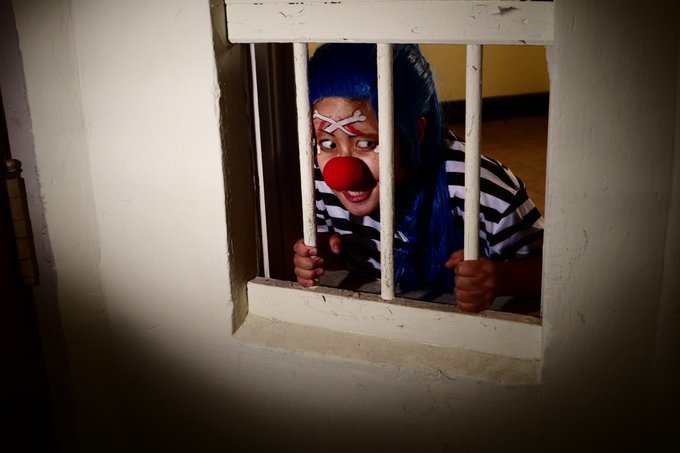 #アコスタ旧奈良監獄 撮れ高しかない。 ボンちゃん手作りMug Shot Placardなるもの。