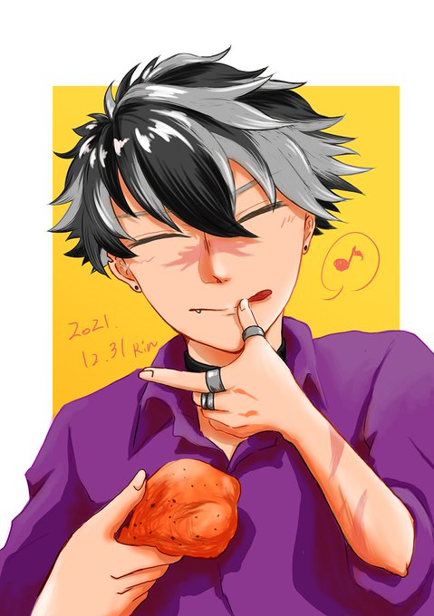 2 12 【エアスケブ】チキンを食べる花丸笑顔のボス 大変遅くなりましたが描きました!リクありがとうございました😊 21/12/31 13:17