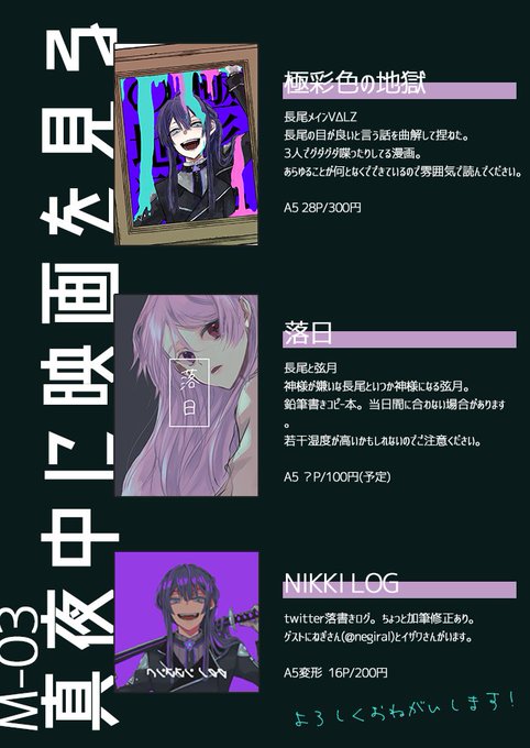 あなたのサークル「真夜中に映画を見る」は、コミックマーケット97で「日曜日南地区 "サ " 16b」に配置されました!コミケWebカタログにてサークル情報ページ公開中です! webcatalog.circle.ms/Circle/1483737… #C97WebCatalog 受かってた~!よろしくお願いします!