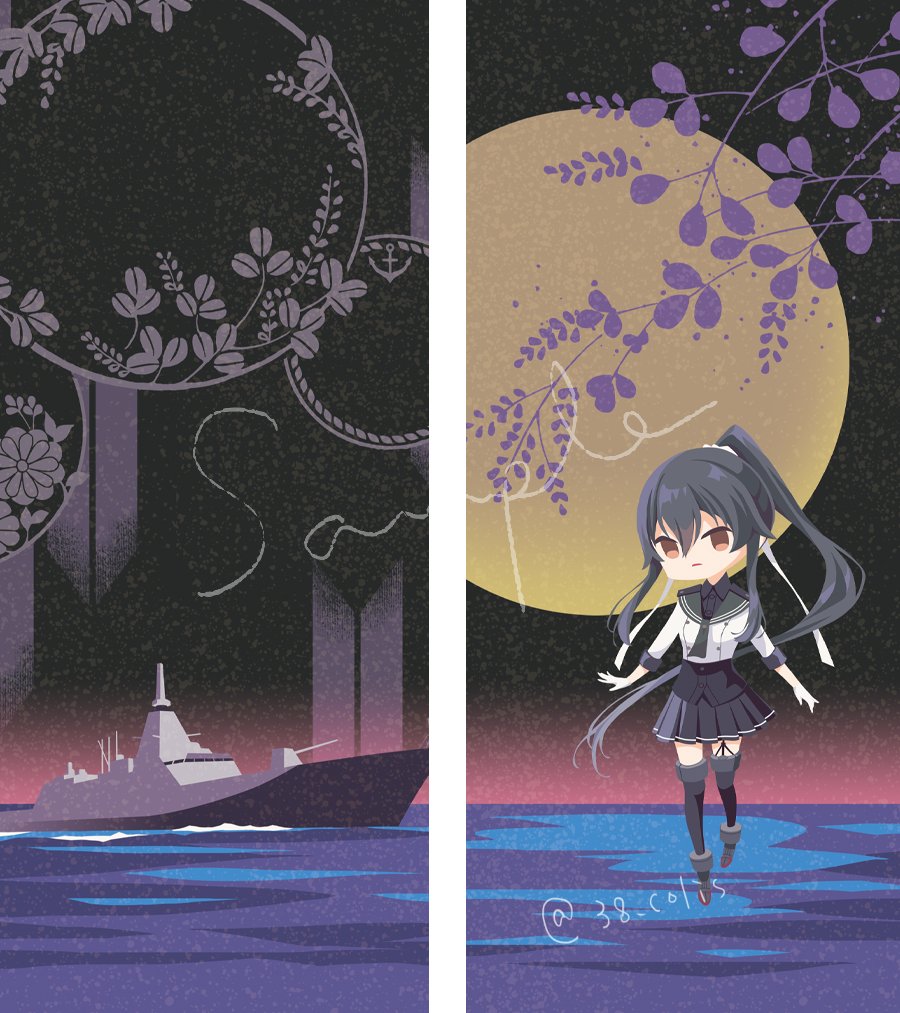 【夏コミC102】巻紙屋様@Sand_leonの新作御朱印帳『矢矧とやはぎ』の表紙イラストを描かせていただきました。 静かな月夜の海に佇む矢矧改二と護衛艦やはぎです。 どうぞよろしくお願いいたします。 twitter.com/Sand_leon/stat…