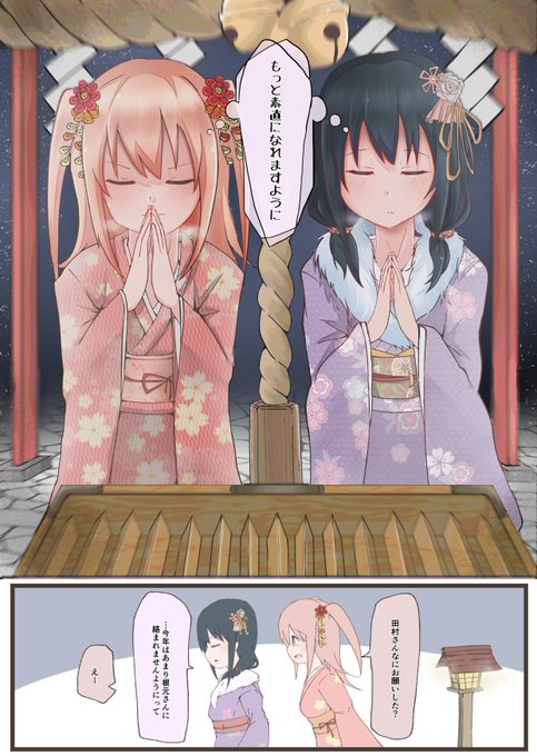 描き初めゆりネモ初詣 二人そろって毎年同じお願いをループしてそう #わたモテ