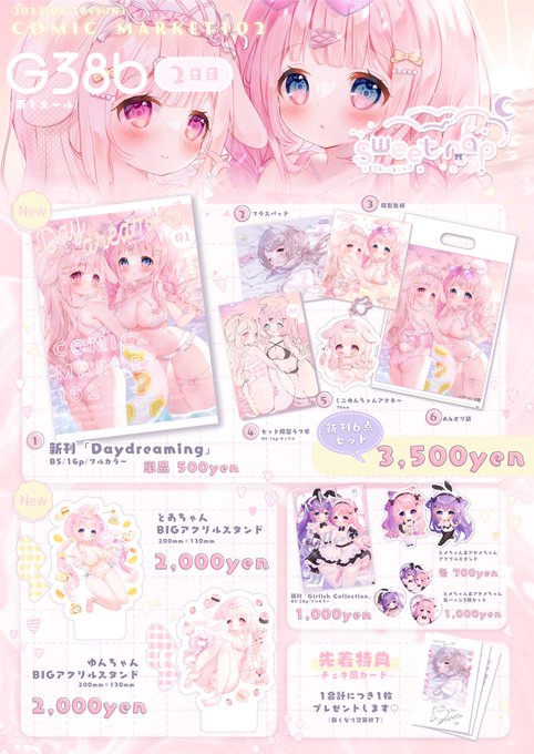 5/7(日)COMIC1☆22 サークル「sweet nap」 スペース【D-16a】 おしながきです~❕ 本人はずっとスペースにいますᐢ.ˬ.ᐢ 当日はなにとぞよろしくお願いします🙌🏻🤍 #COMIC1 #コミ1 #お品書き