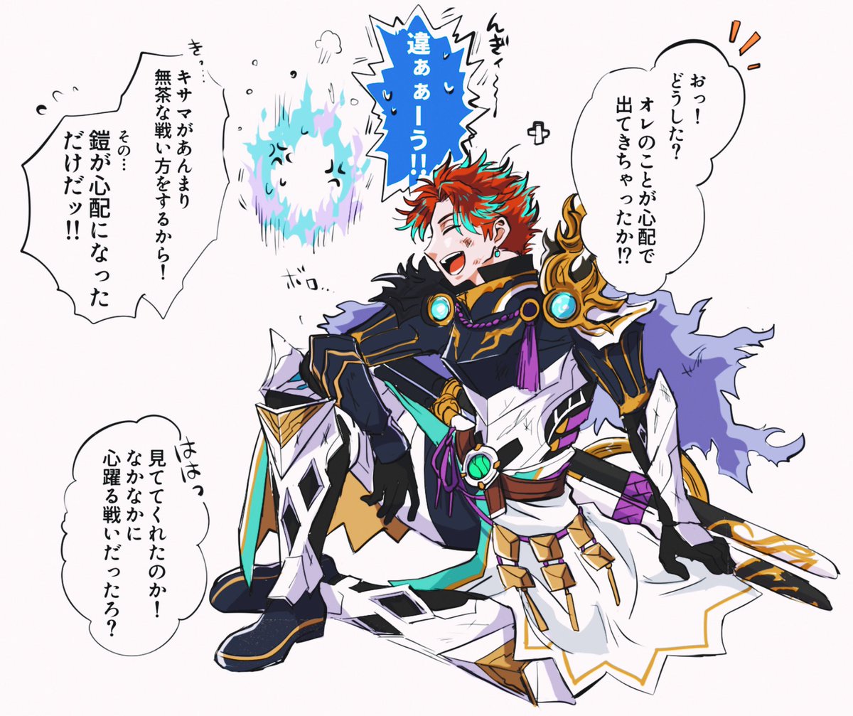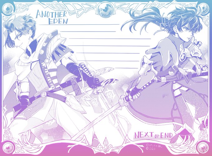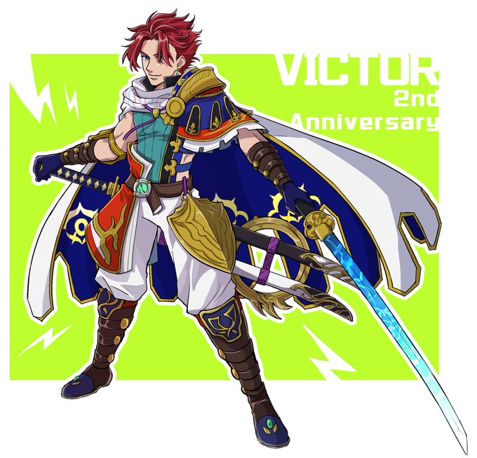 ヴィクト殿〜ッッッッAS1周年オメデト🎉オメテオトル‼️⚡️⚡️⚡️⚡️⚡️どこまでも自由奔放で磊落な冒険者、一生愛す‼️ あの日の冒険も、この二刀に乗せる! #アナザー絵デン twitter.com/390kk/status/1…