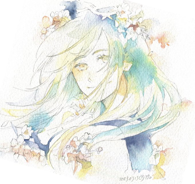 7 47 11.さく サクラサク #きもちじてん #創作 #透明水彩 #watercolor 23/03/14 12:03