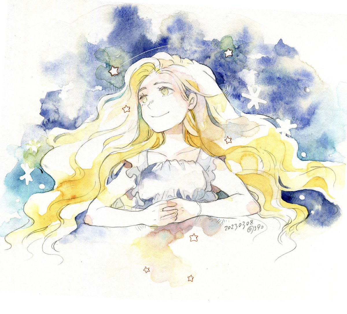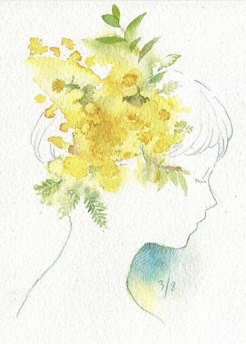 2 8 3月8日 #ミモザの日 #国際女性デー2023 #透明水彩 23/03/08 21:34