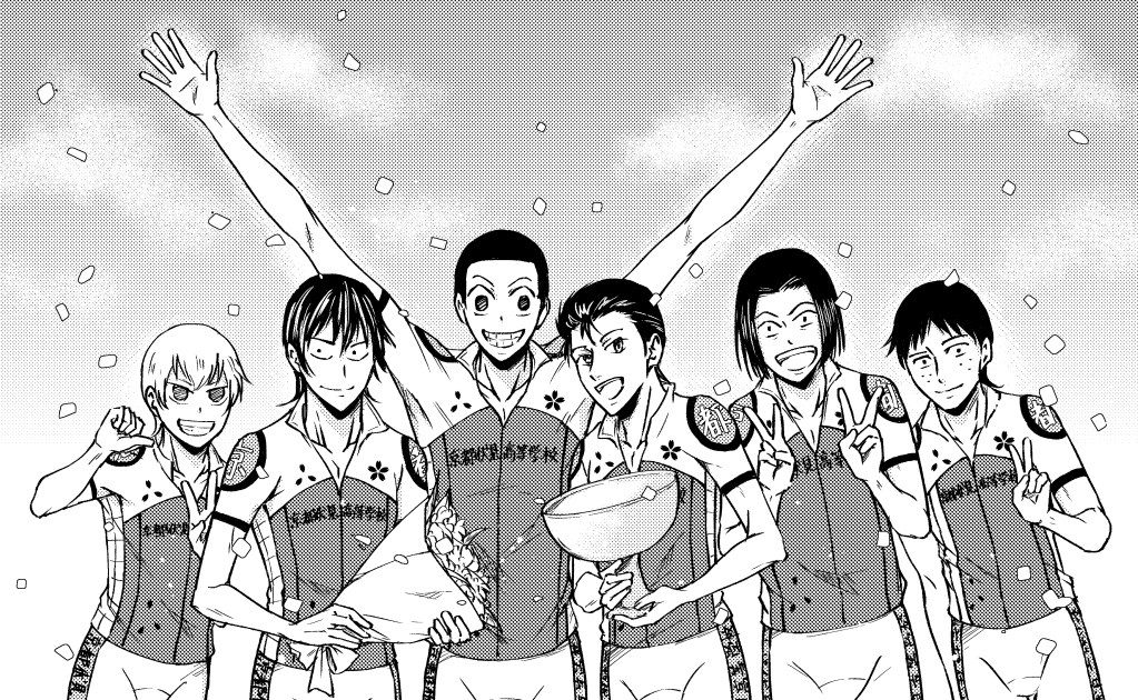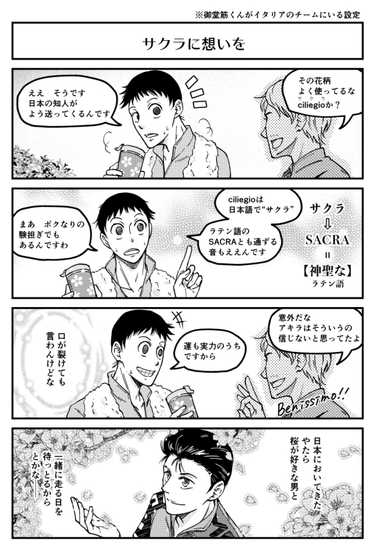 去年の9月のパロディー落書き再掲なんだけど。TDFで同じチームの2人が肩組んでゴールして優勝したステージがあって、プロ御石もこんな光景があったらいいなぁって