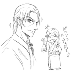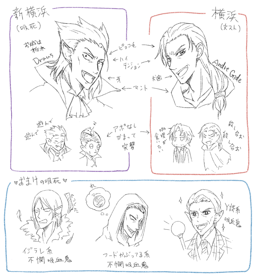 1Pペン入れ終わったから休憩に、新横浜と横浜の、なんか似てる人たちを描いてみたり…