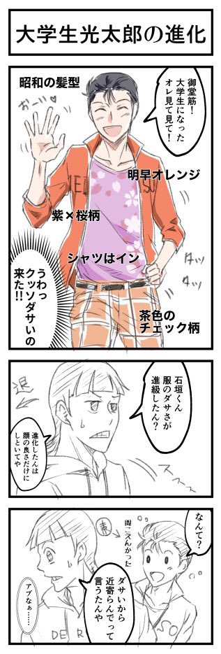 1 5 井原ー、おめでとー🎂 過去絵でごめんね。単体でちゃんと描いたことはないけど、石やん世代トリオが好きだからちょこちょこ描いてる。下絵止まりのあるブツがあるので、秋にはそれも仕上げたいな。 21/08/16 01:50