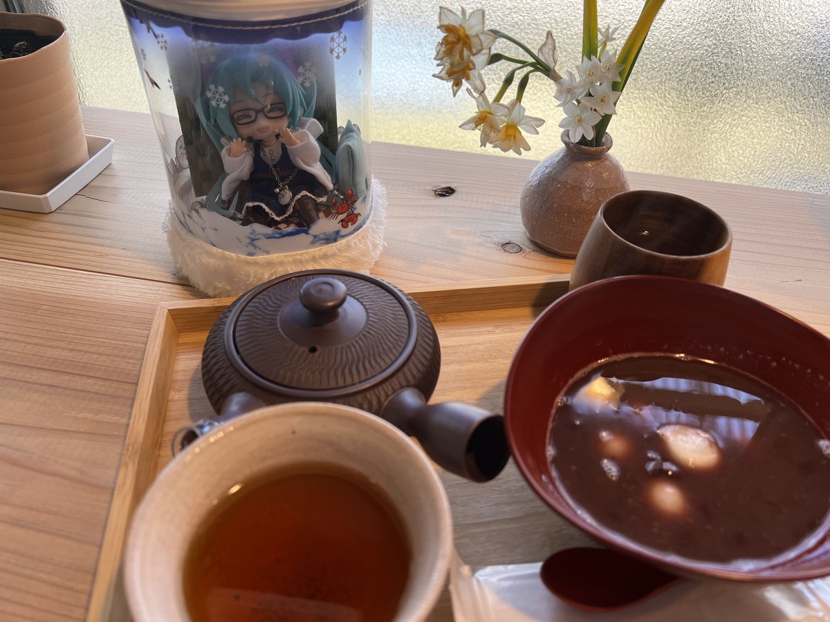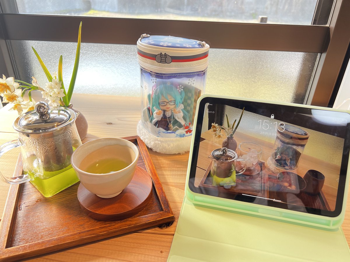 #深夜のねんどろ撮影60分一本勝負 お題 こんげつのしゃしん #深夜の初音ミク撮影60分一本勝負 お題 フリー いつものお茶屋さんへ通う2月でした🍵 熊本駅から徒歩10分なので九州新幹線利用者にとっては近い(ˊᗜˋ)