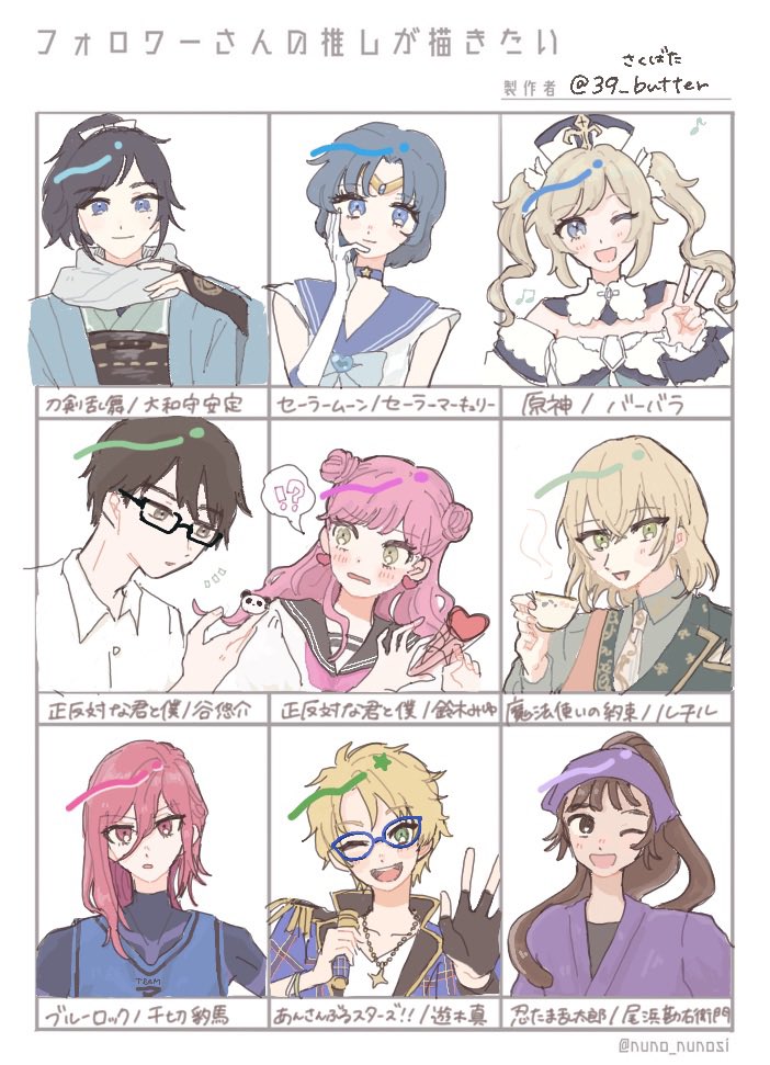 7 16 色んなキャラ描けて楽しかった〜!! リクありがとうございました🌼 #フォロワーさんの推しが描きたい 23/04/15 19:40