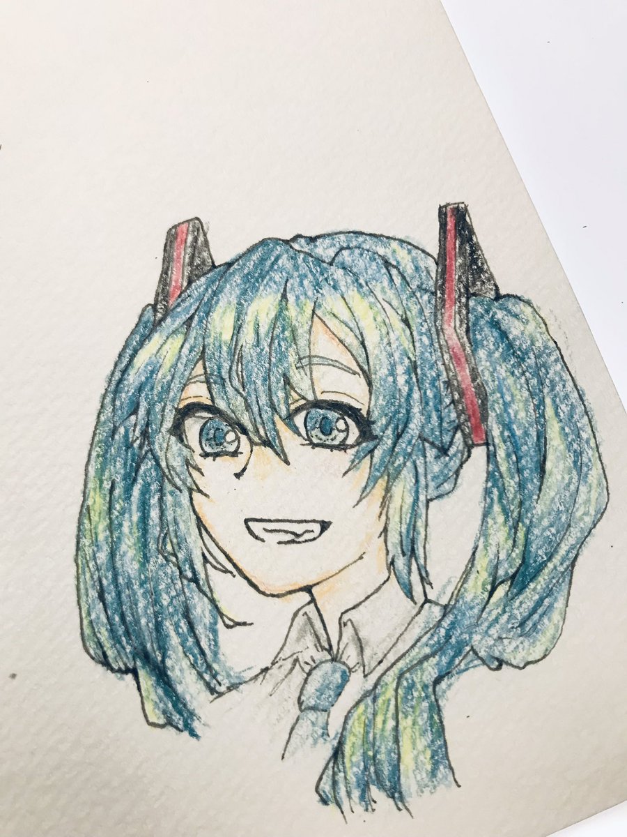 落書きをアレンジしてみたら結構色塗りが上手くいってしまった 普通のペンで描けばよかったぁぁあ!! #初音ミク #イラスト