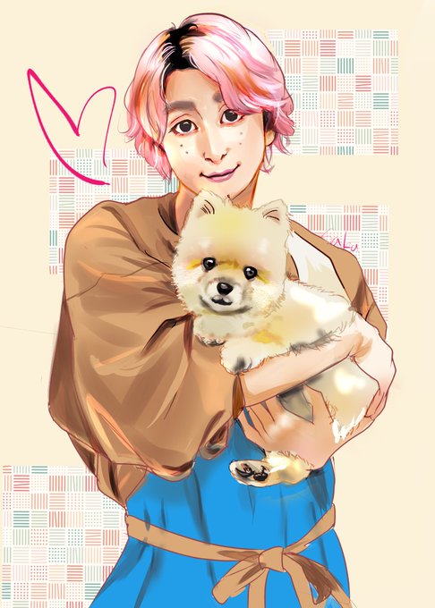 Chimiさんとの合作でトリマーあべさく描きました🫶🐶わんこ描くの、難しいけど楽しかったです😂ちみさん素敵なあべちゃんと可愛いレイアウトありがとう〜!💚💗 twitter.com/hokkeatarime/s…