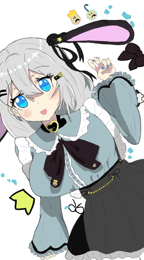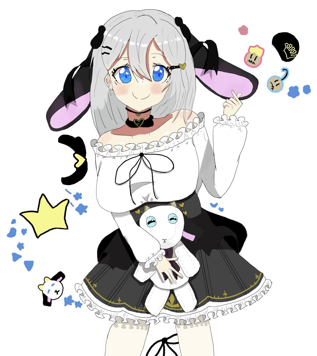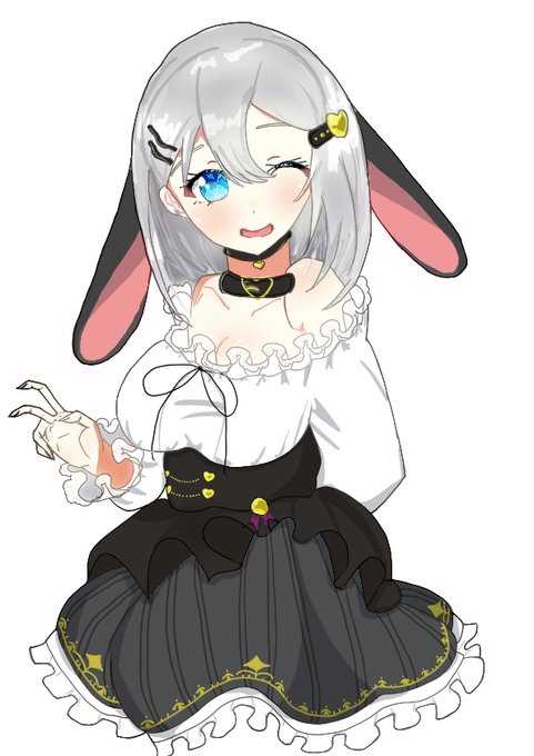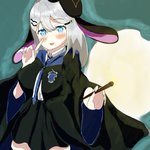かっこいい雰囲気な音玄ちです 「卯年だからうさ耳カチューシャ?でも僕山羊耳あるし…じゃあ、はい。ツインテにしてみた( ^ω^ )」 (初めての厚塗りです。かっこよく描けたかな…?いつもの塗り差分もあります) #山黒音玄 #あおぎり高校美術部