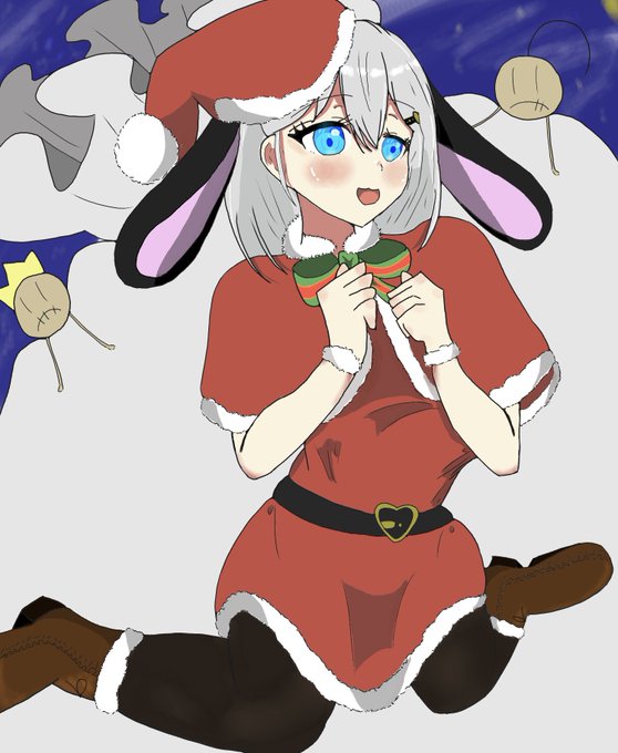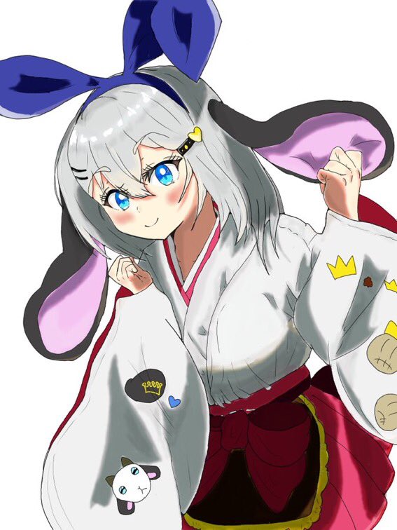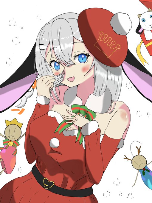 初詣に行くと、いつもその神社にいる幽霊巫女さんがソワソワしている。 軽く手を挙げて挨拶すると、彼女はたっ、とこちらに駆け寄ってきた。さっぱりした冬の風にはためく山羊耳を摘み、目を輝かせ、 「ふふっ、今年は耳6つですよ。ぴょん!です( ^ω^ )」 …的妄想 #山黒音玄 #あおぎり高校美術部