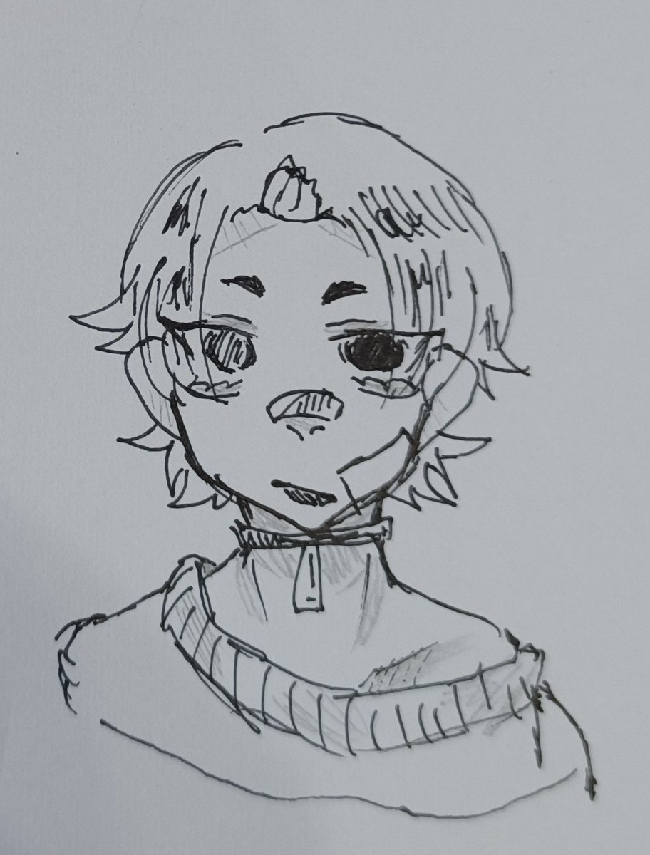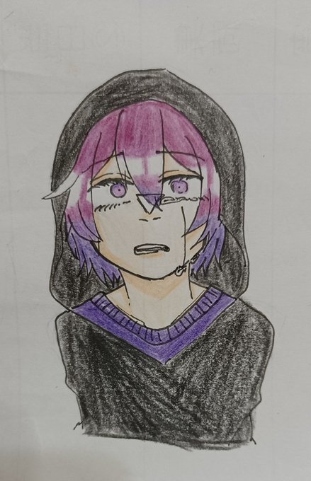 これは黒ペンで描いてシャーペンと色ペンで色塗りした何かです。 #イラスト #オリキャラ