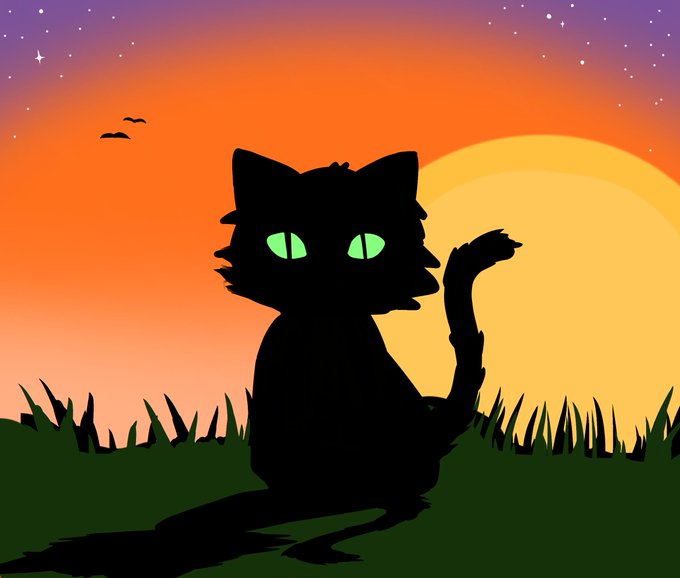 0 6 黒猫の旅 #イラスト #デジタルイラスト #黒猫 #夕焼け #猫 22/09/11 21:03