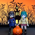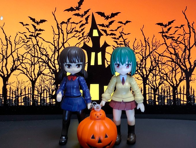 #夜のフィギュア撮影会 10/30 お題「ハロウィン」 #楽しく玩具撮影会 10/26~31 お題「ハロウィン」 写真左上に謎の白い手が…( ゚д゚) (PCにフリーイラストを出して撮ったらカーソルが写ってしまった) #アクアシューターズ