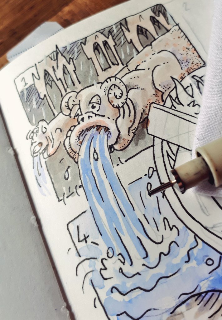 De bouwstijl heet dus Gotisch omdat er steeds zo'n #Gargoyle aan het einde van de Goot is. #inktober2022 #Inktober