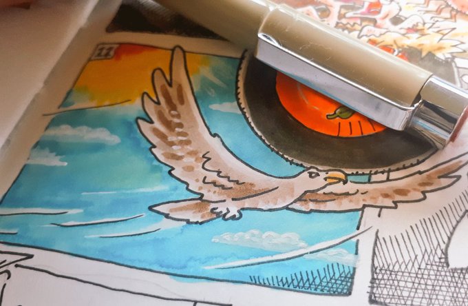 Quand soudain, semblant crever le ciel, et venant de nulle part, surgit un #eagle noir. #inktober2022 #Inktober