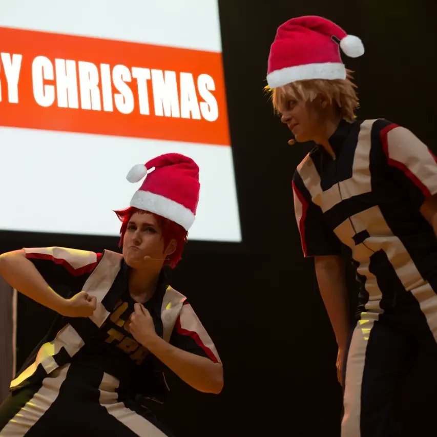 As we didn't have a proper photo shoot, have a stage pic instead. And the christmas version, as it's gonna be the first advent on sunday. Katsuki Bakugou by me Eijirou Kirishima by @chirpycharlotte Pic by @Chikara_chan #cosplay #crossplay #bnhacosplay #bnha #katsukibakugou