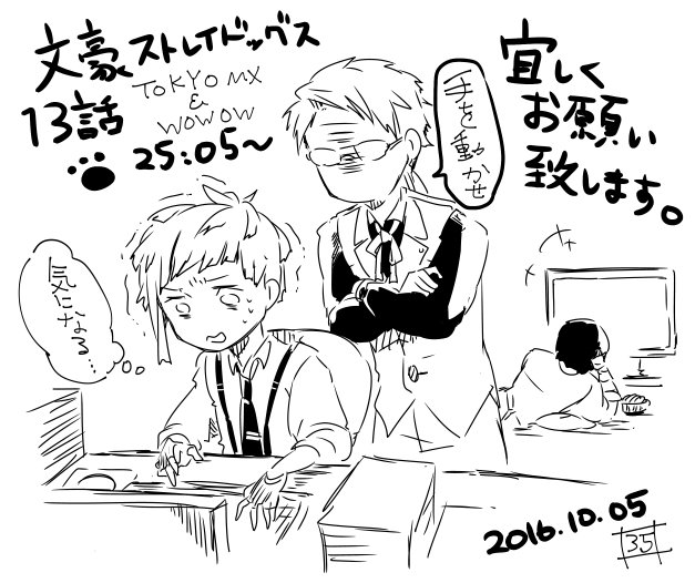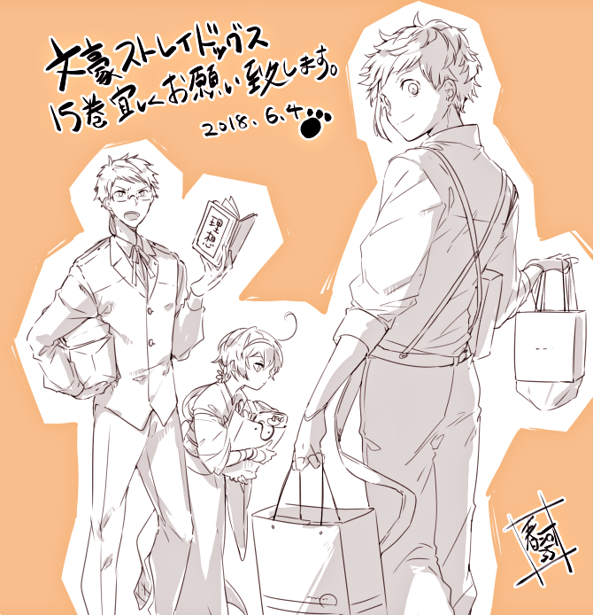 おはよう御座います、文豪ストレイドッグス13巻本日発売となります。同日発売のヤングエースにて続きがそのまま読めるようになっております。本編はこんなに仲良くないですがどうぞ宜しくお願い致します。