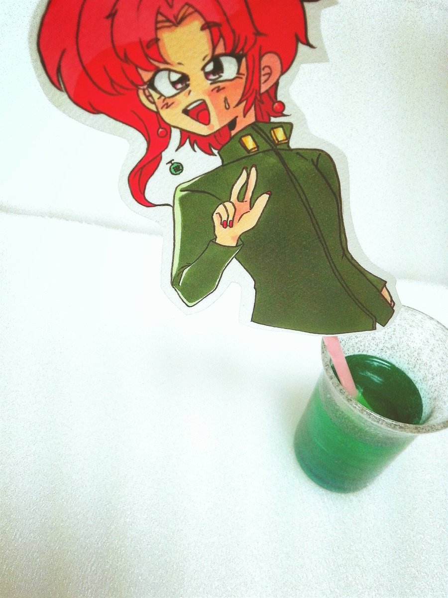 #ジョジョラーさんと繋がりたい #ジョジョ好きさんと繋がりたい #ジョジョ #メロンソーダ #花京院 🍈花京院のメロンソーダ🍈 作り方 ・メロンソーダの素を水に溶かす ・ストローに花京院を貼り付ける ・ストローをさす 花京院何気に初描きかも…❓カワイイ〜︎💕︎💕
