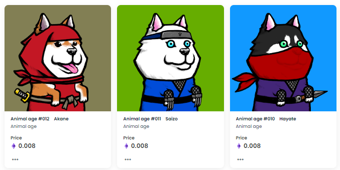 GM! 新顔の忍者犬、3匹リリース!✨ ニンニン!🥷 ▼Open sea「Animal age」 opensea.io/collection/ani… #NFTJPN #NFTs #opensea #Animal_age #dog #犬 #イラスト #nftcollectors #ninja