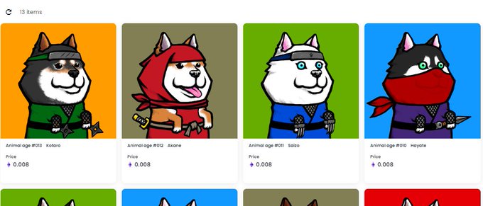 @shunbow_nft GM🐕☀ 宣伝失礼します~🙇♂️ 初段レスラーシリーズリリース! ✨鋭意追加制作中✨ ▼Open sea「Animal age」 opensea.io/collection/ani… #NFTJPN #NFTs #opensea #Animal_age #dog #犬 #イラスト #nftcollectors