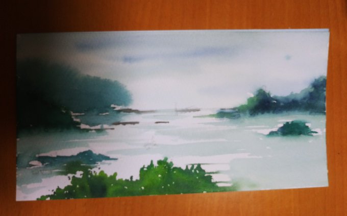 0 1 #水彩画 3年ほど前に旅の宿で描いた水彩画です。 23/03/21 22:53